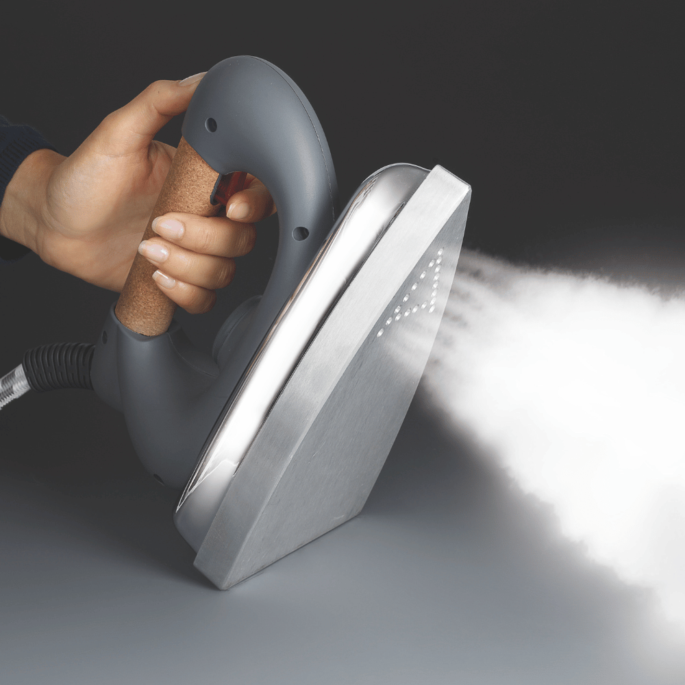 Profesionalna aluminijska ploča s preciznim rupicama za paru na vrhu i udobna drška od pluta osiguravaju savršeno zaglađivanje nabora kao kod pravog profesionalca.